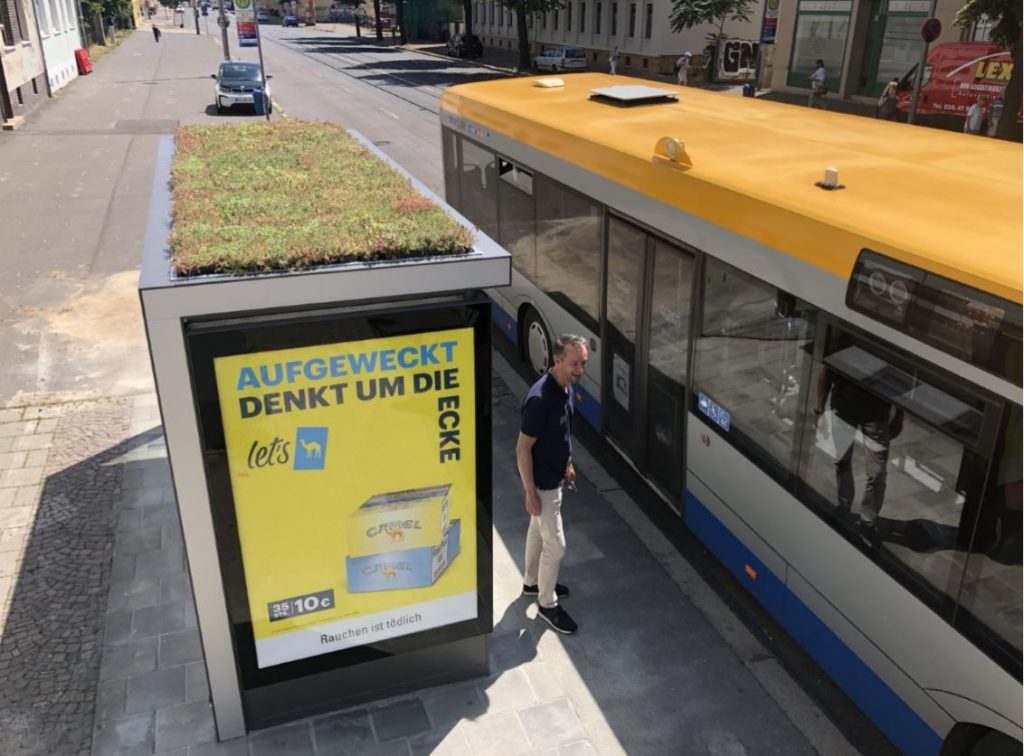 Diese Dachbegrünungen sind eines der Premium-Produkte des Unternehmens und durch jahrelange Entwicklung den Anforderungen auf dem Markt gewachsen. Das sogenannte Sedum Dachbegrünungssystem garantiert eine attraktiv aussehende immergrüne und anspruchslose ganzjährige Begrünung beispielsweise von Buswartehallen. „Dabei besteht die bepflanzte Schicht aus einer Mischung aus vulkanischem Gestein und einer organischen Substanz mit vorkultiviertem Sedum. Dieses Sedum ist eine Pflanzengattung aus der Familie der Dickblattgewächse und setzt sich unter anderem aus den Pflanzenarten Album, Spurium, Acre und Hispanicum, sowie Mesembrianthemum Cooperi zusammen“, verdeutlicht Maike Fuchs. Der Bewuchs eignet sich für die Installation auf Schrägdächern mit einer Neigung bis maximal zehn Grad und ist auf sogenannten Kassetten befestigt, die auf relativ einfache Art und Weise miteinander verbunden werden können.